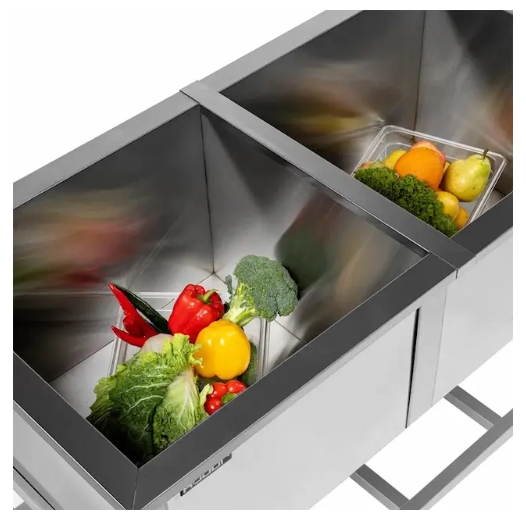 - Две моечные секции позволяют организовать поэтапную обработку кухонного инвентаря и посуды — от замачивания до окончательной мойки.