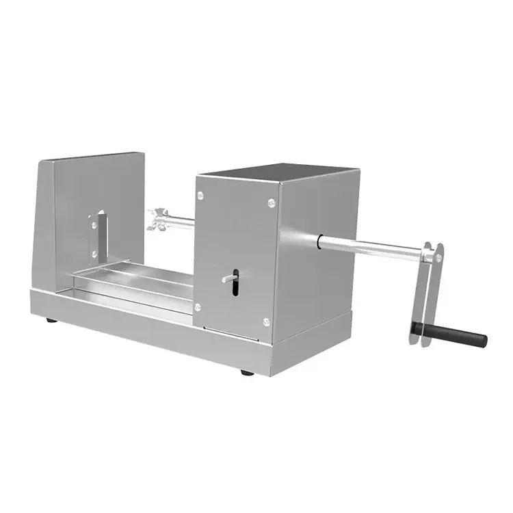 Устройство резки фигурных чипсов Кобор KS-1 , предназначено для резки картофеля на деревянной палочке спиралью. Корпус из нержавеющей стали. Нарезается картофель на стержень ножа, что дает возможность использовать палочки любого диаметра и увеличивает производительность труда. Картофельный сок собирается в специальный поддон. Ножи выполнены из высококачественной нержавеющей стали.